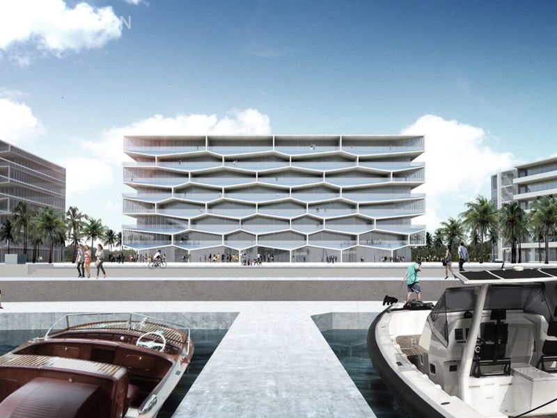 BIG + HKS + MDA组合近日揭晓了他们在巴哈马的一个蜂窝表面住宅建筑,该建筑共16000平方米,每个阳台都有可以俯瞰码头的私人泳池。建筑的具体地点在新普罗维登斯岛南部的奥尔巴尼高尔夫度假胜地,这里海滩风景如画,建筑旨在成为这个度假胜地的标志建筑和海洋的灯塔。
