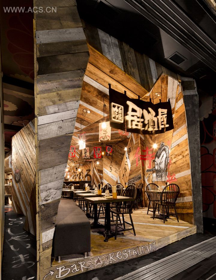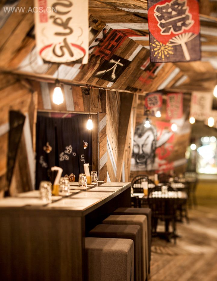To create a place with its own dynamics, the design of the new Izakaya Kinoya focuses on fractals, chaos and the notion of confinement. Breaking from the outside world, the wooden angular geometry of 800 ft2 forces a symbiosis within between occupants. This extremely wild universe, with a strangely muted urban atmosphere, the relationships of intimacy between human are profoundly changed.