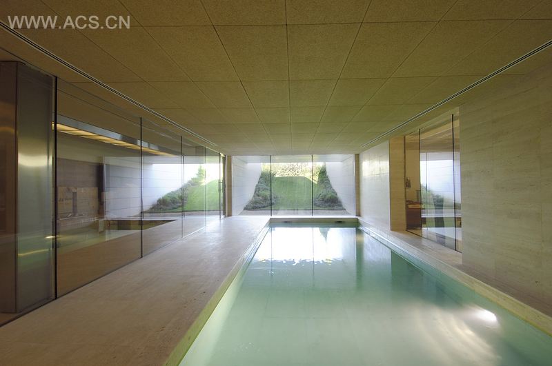 The first floor is intended for the master bedroom with private bathroom, a dressing room and a study. In the ground floor are located the facilities, garage, service area with bedrooms, bathrooms and a living room, indoor pool, gym, sauna, steam room, and a large movie theater.