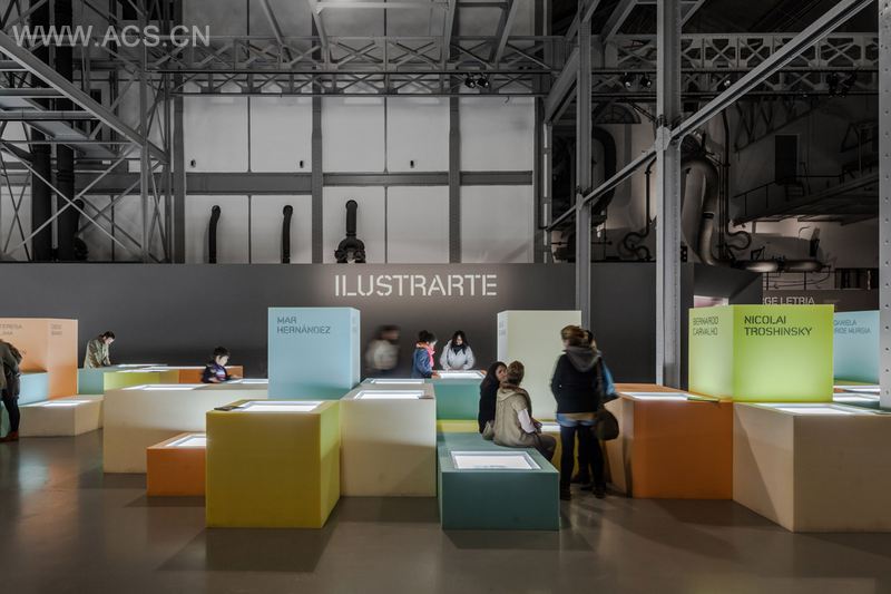 Ilustrarte 14 是两年一届的国际儿童书籍插图展览会,本届由葡萄牙工作室 Pedro Cabrito + Isabel Diniz 设计。设计师将儿童图书的趣味性和创造性综合到一个解决方案,借助彩色积木这个经典元素来传达简单和潜在的探索性。有趣的是,设计师的灵感来源正是一套从玩具店买来的彩色积木。这些简单的体块将平凡转换成一种练习,让我们去发现创作的过程。根据基本创意元素,设计师决定采用一种新材料——高密度海绵,其特别的质感能够引发触觉兴趣,刺激想象力和人与展示道具之间的交互。150本图书被分布展示在彩色高密度海绵组成的结构中,形成一个简单欢乐并且充满创造性的展示空间。