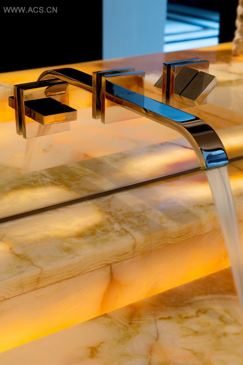 主浴室选用档次极高的Castello 独立式浴缸,与椭圆墙面完美贴合,铺以Bisazza 马赛克。私人休息室是下班回家放松身心的理想空间。设计师细心地考虑到暗光下的室内视效。无论是壁炉腔上银箔纸的反射光,还是丝绒面料微微的光泽,都让整个空间散发出摄人心魄的华丽气派。与休息室相邻的是主更衣室,衣柜和梳妆台镶以黑橡木框,柜门和抽屉装有柔软的织物帘以及Murano 玻璃把手。此设计的灵感来自高端时尚精品店和丝绸帘、丝巾等配饰。