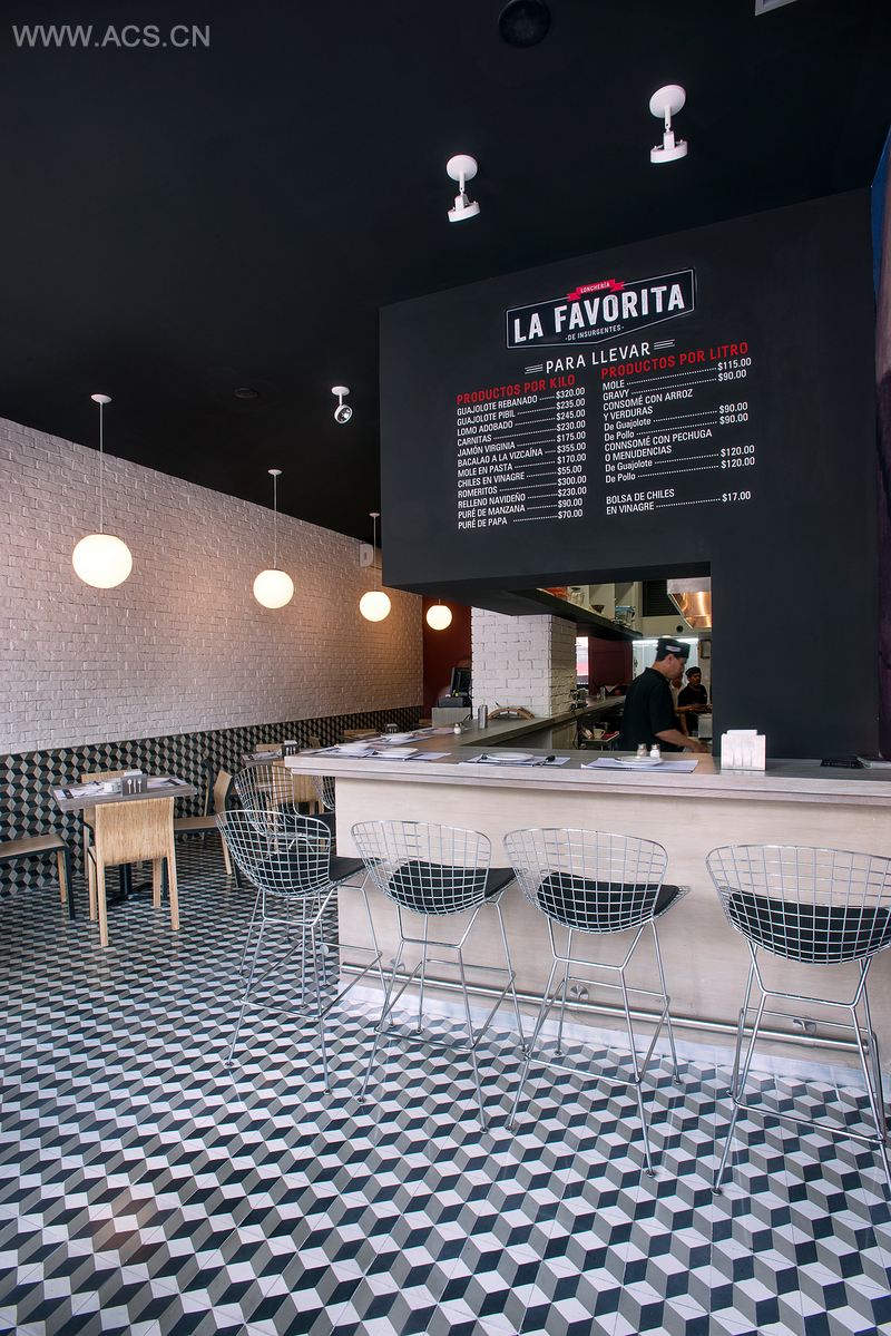 色彩搭配及装饰材料是根据操作的需求以及设计的整体感来挑选的,与Ernesto Moncada的平面设计一起创造出现代的氛围, 向墨西哥的l o n c h e rías传统致敬。这是一个能给顾客带来惊喜的讨人喜欢的空间,结合了高品位与利用了传统元素的设计,最终形成的空间氛围使人们能在愉悦的环境中享受美味的墨西哥玉米卷。
