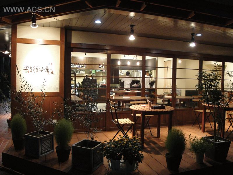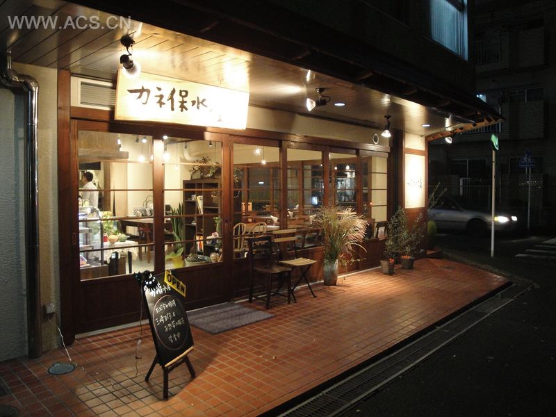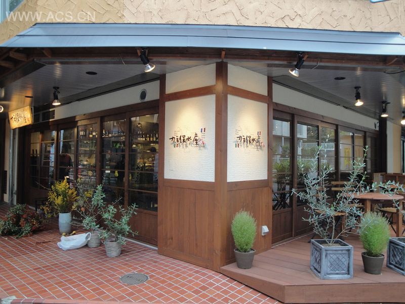 日欧风格酒馆设有一个外卖角,出售新鲜金枪鱼。室内有棕色和白色的墙壁及手工的吹制玻璃照明设备。
