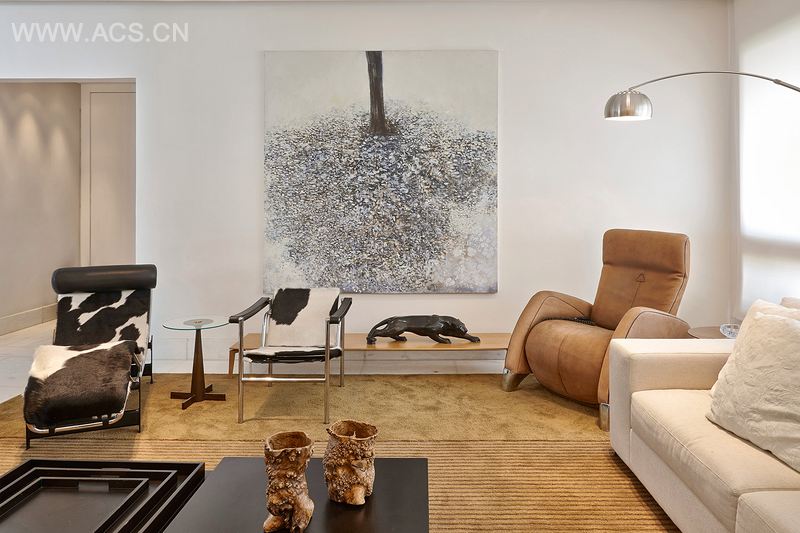 风格各异的挡风板,有米黄色的、棕色的、黑色的,营造出一种既现代感十足又温馨安逸的居住环境,再加上漂亮的灯具,餐厅的枝形吊灯将这样的氛围推向更高境界。屋内更陈列有名贵家具,都出自国际设计大师之手,如李·柯布西耶、维克·玛吉斯特瑞蒂、杰米·特瑞斯拉,还有来自巴西的瑟奇·罗德里格斯、乔治·扎尔日品、阿尔弗·李斯,还有一些做工精美的艺术品,有着各自非凡的历史,如来自18 世纪的Sévres 瓷器,传自祖母手中的老式通用冰箱、缝纫机,还有一匹木马,能勾起祖母在农场时的童年时光的会议。所有这些都个性鲜明,为公寓的装修风格画上了完美的最后一笔。