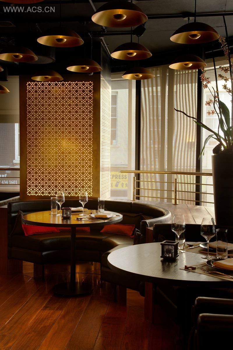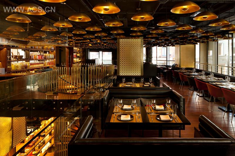 Spice Market London is a unique mix of the ethnic vintage feel of Spice Market New York and the contemporary architecture of the new building on Leicester Square in London. The eclectic and intimate design is a result of gold mesh sliding screens, brass screen lanterns, jatoba timbo flooring and cosy booths, a unique brass 'birdcage' spiral stairs and 600 wok-lights.