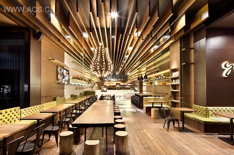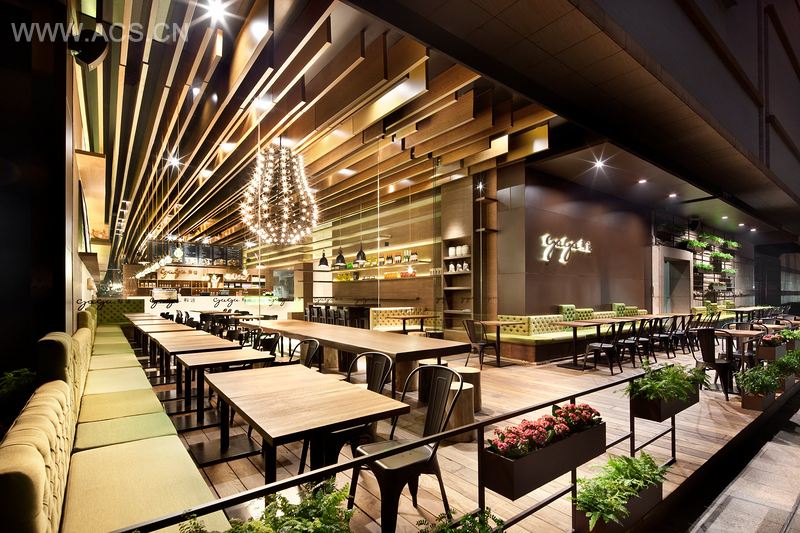 灵活的座位排布计划,使Gaga能够在保持家庭感舒适感的同时,又能接待大客流。沿墙的沙发靠背椅一路从室内延展到室外。位于餐厅中央位置的自由式座位可以以多种方式组合试用。墙面货架也可灵活多用;在繁忙时段,较低的货架也可以被清理出来作为餐桌使用。