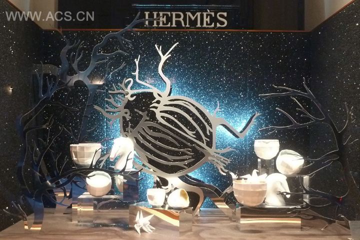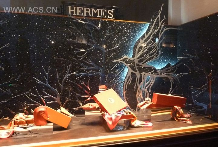 probably related to the transformation campaign, the windows of Hermes Avenue George V playing anamorphosis between landscape and animal, landscape revealing the animal at an angle. poetic and elegant.