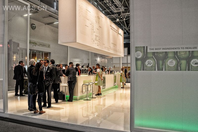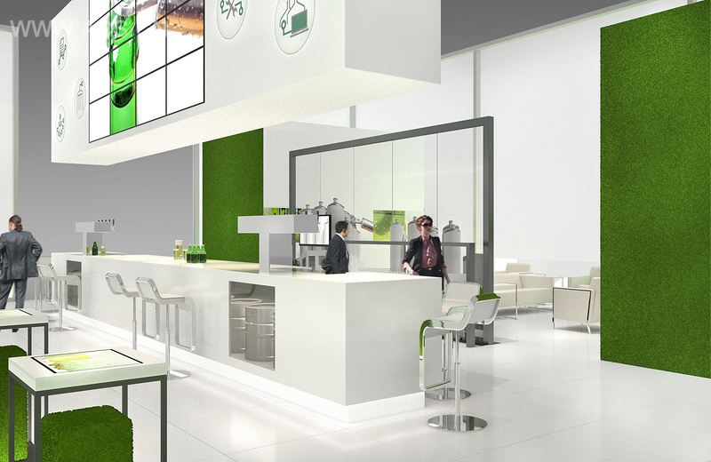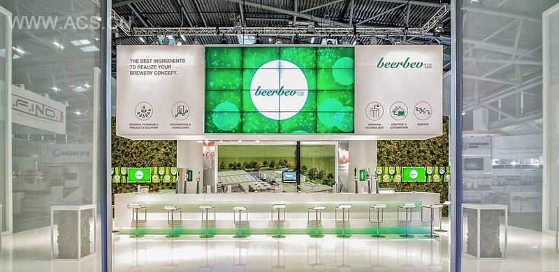Beerbev Island Booth is surrounded by highly transparent fabric that allows a view inside, yet creates a pleasantly spacious feeling of comfort inside the booth.