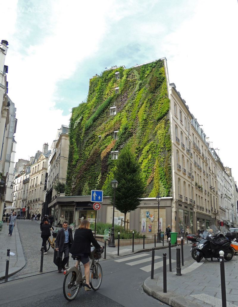市中心的一座历史建筑装有植物墙,共栽种237 个品种,7 600 多株植物。