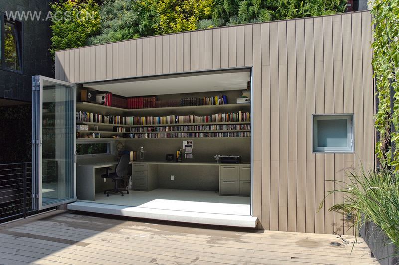 2012-2013 年,在一块12×13 平方米(39×42 平方英尺)的土地上,人们改造了一个建筑体以实现室内照明。外立面上的斯莱德石与像木纹砖一样柔和的榉木相对比,让建筑的线条更明晰,空间更开阔。