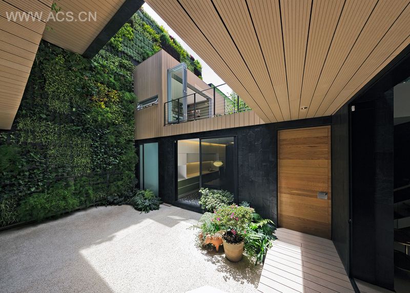 Casa CorManca 建在一块174 平方米(1 872 平方英尺)的土地上,位于垂直植被花园墙的南面。建筑由三层楼构成,主平台在第二层,内部有一个小型讲座工作室。因为确实没有多余空间建造一个地面庭院,而且主平台在社交方面起着决定性的作用,因此,这片区域旨在从根本上转变“开放式庭院花园”的概念。