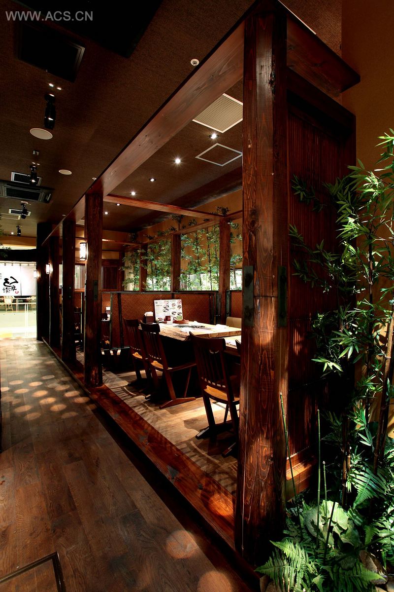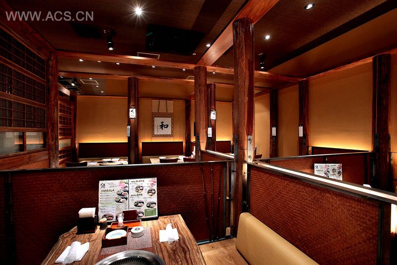 这是一家专业的日式烤肉餐厅,位于一个购物中心内。他们用的牛肉来源于日本的“Kuroge”黑毛牛,这种牛肉被认为是最高品质的牛肉。设计师采用成熟而略显沉重的色调。他使用简单而自然的材料,如木材、竹子和金属,目的是展现他们所供应的简单、真诚而美味的牛肉。当顾客走进餐厅后,坐在灯光下的隔间里享受私人空间的同时可以看到整个餐厅布局。这是一家比较高档的家庭风格的餐厅。