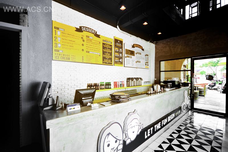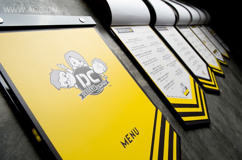 甜品公司简称DC,成立于2012年,这里体现了大众的生活方式。DC位于印度尼西亚雅加达,其设计满足了目标市场的流行趋势。三个吉祥物被设计来代表其创办人,同时增加有趣的氛围。单一的黑色、灰色和白色与少许黄色搭配,设计探索了材料的演变及大胆的色调。DC的菜单设计源于创办人的意愿,让消费者自由搭配甜品,享受其中乐趣。通过设计和产品引发的热情,DC希望能满足消费者口腹之欲,同时让所有消费者都得到最大的满足。