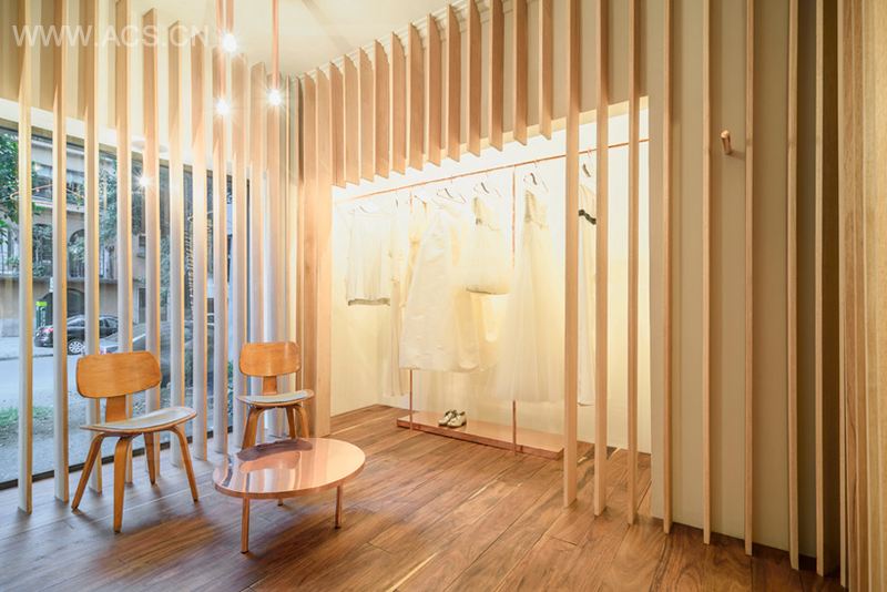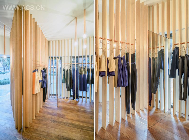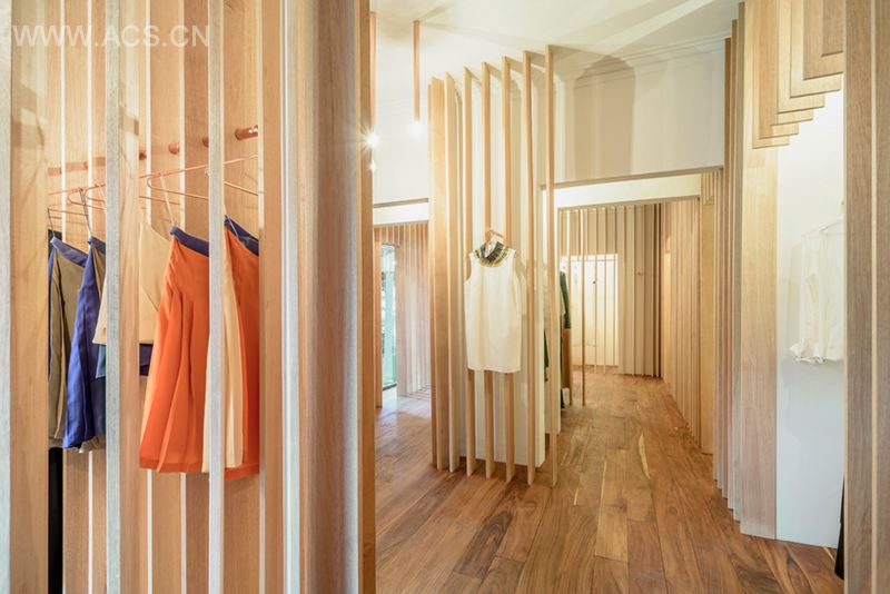 在墨西哥市中心,zeller & moye建筑事务所用铜和木材作为装饰材料为当地的时尚品牌sandra weil设计了一家 零售店 。室内装修的主要元素是一系列竖向排列的木条,这些通透的隔墙划分出不同的区域。这种线性的重复让顾客可以慢慢去发现并挑选店中各层各区域所展示的服装。