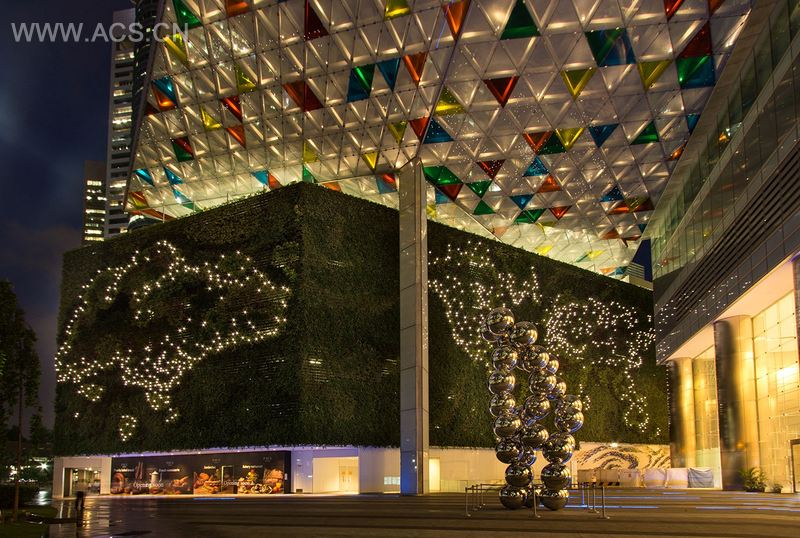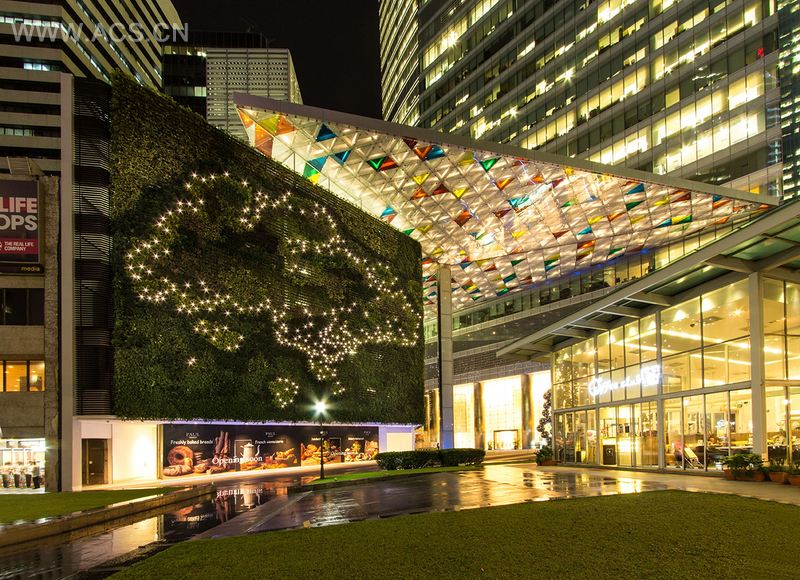海洋金融中心上空的热带花园建在建筑架构和立面框架之间的间隙之中,与大自然相联。第39 楼至最高的43 楼郁郁葱葱,为长时间在人工通风环境中办公的工作人员提供了一处放松和休闲的场所。为与楼房的坚硬表面结构框架呼应,景观使用了舒缓线条的设计,创建了亲密的体验。第41 楼带有树冠的树木颇为有趣,而植物不同的纹理和色彩更带来一种活力迸发的视觉享受。