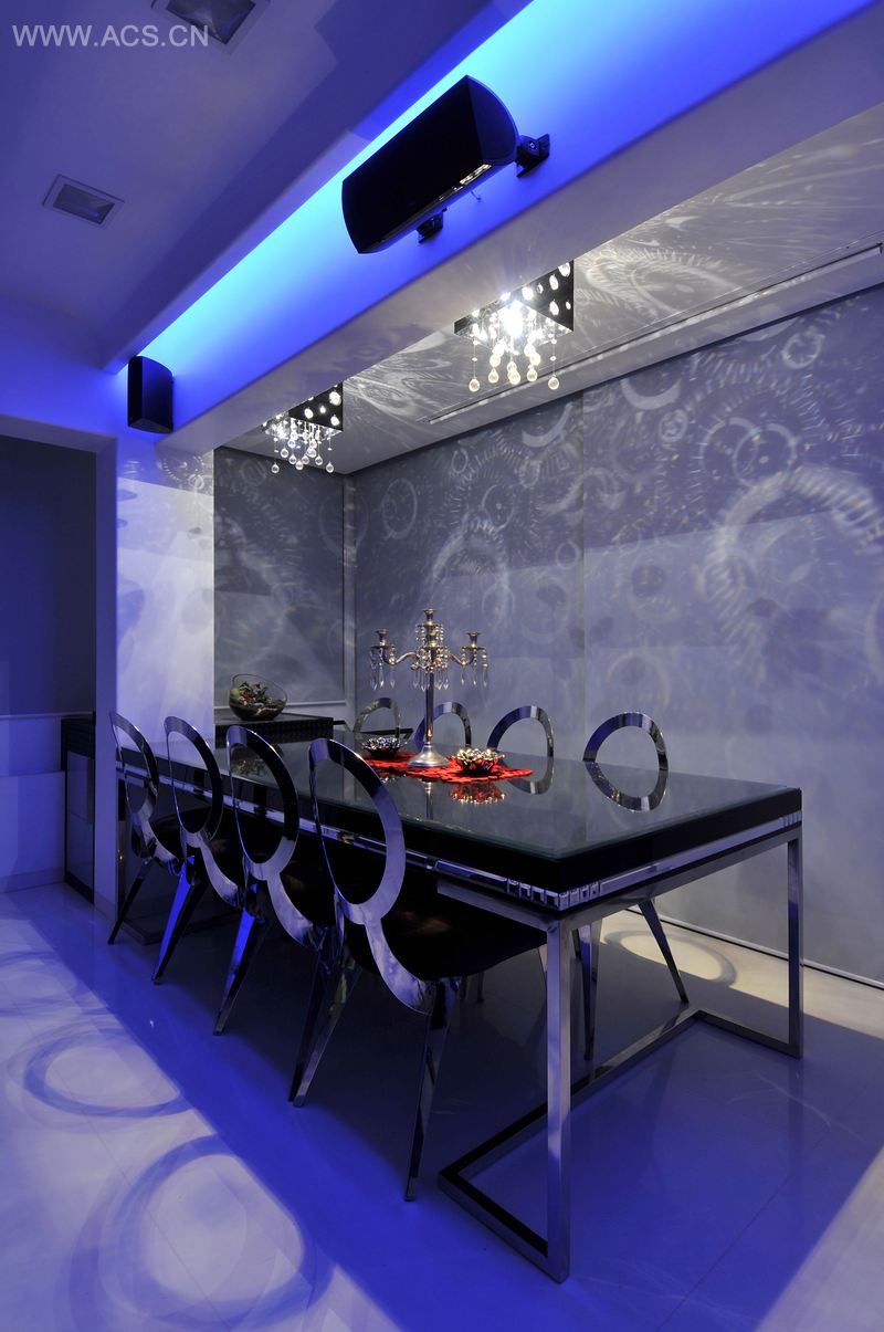 The entrance was dressed up with a striking laser-cut acrylic motif in a deep shade of maroon, pasted on a glossy white door, making for an arresting effect. "The idea was to denote a sense of peace and harmony throughout the house with our own interpretation of yin and yang," explains the designer. This essence pervades through living and dining area, which is resplendent with glittering crystal light fixtures that reflect on the walls and ceilings for a dazzling effect.