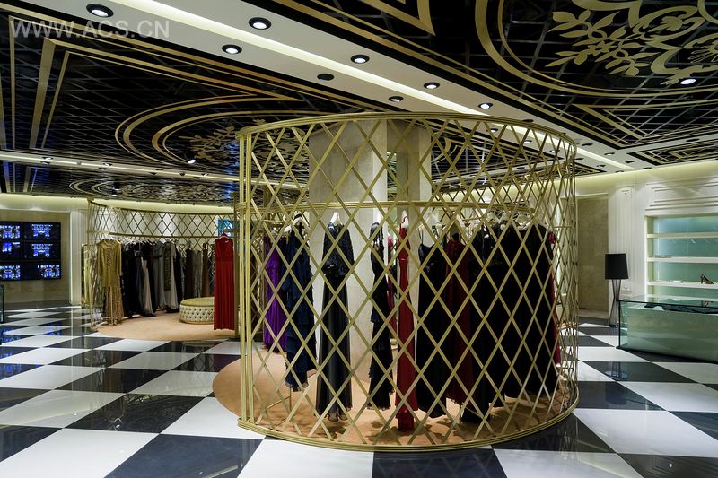 从这一奢华的环境中得到灵感,本案被设计成仿佛古老宅邸的室内空间,同时充满现代气息。天花板上激光切割的黄铜图案,精细设计过的,一块块焊接而成的半圆形黄铜笼子,以及空间内其他家具和展示装置。