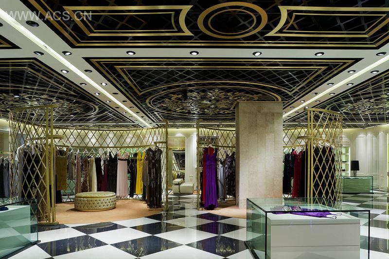 这间Vakko的新分店,位于伊斯坦布尔伊斯坦伊公园新的购物中心内,1500平方米的长矩形空间内主营女装、男装等服装系列。Vakko品牌的前卫风格与经典的现代元素结合。石灰石的墙面,黑白色大理石地板,天花板由激光切割的装饰组成。黄铜制的展示装置为服装系列增加了吸引力,台球桌则为男装区域加分不少。古老宅邸的感觉,华丽的材质,弱化的色调,在这间Vakko专卖店内形成平衡的优雅氛围。