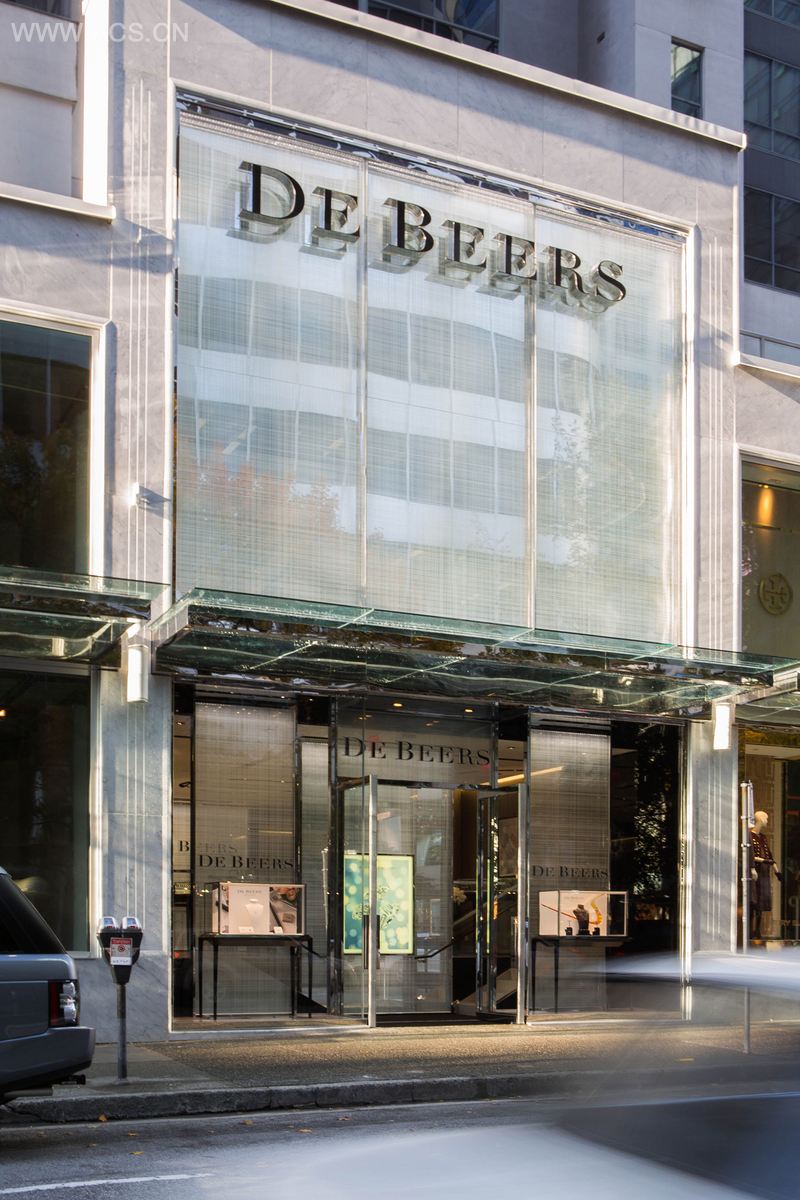 戴比尔斯店面的品牌标识独特而现代,是奢华珠宝品牌世界的里程碑式设计。