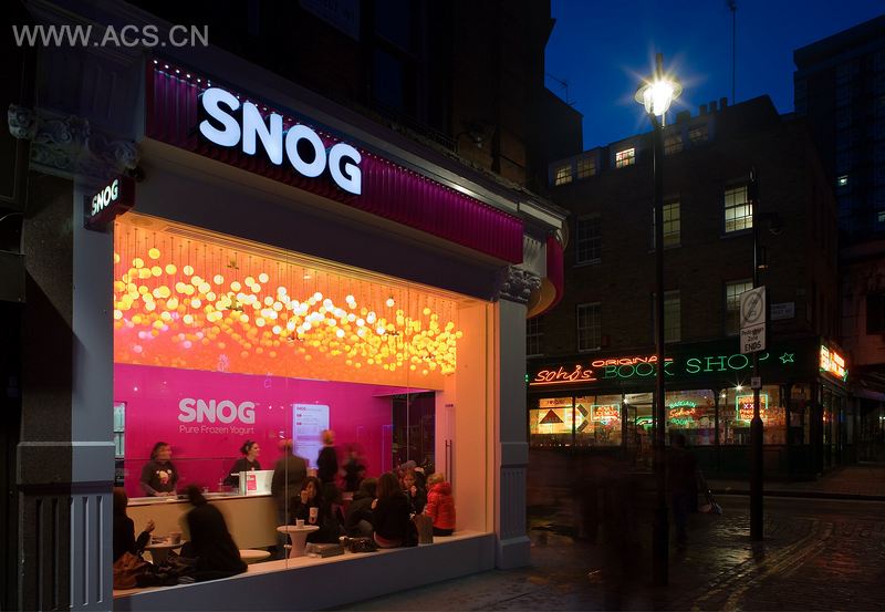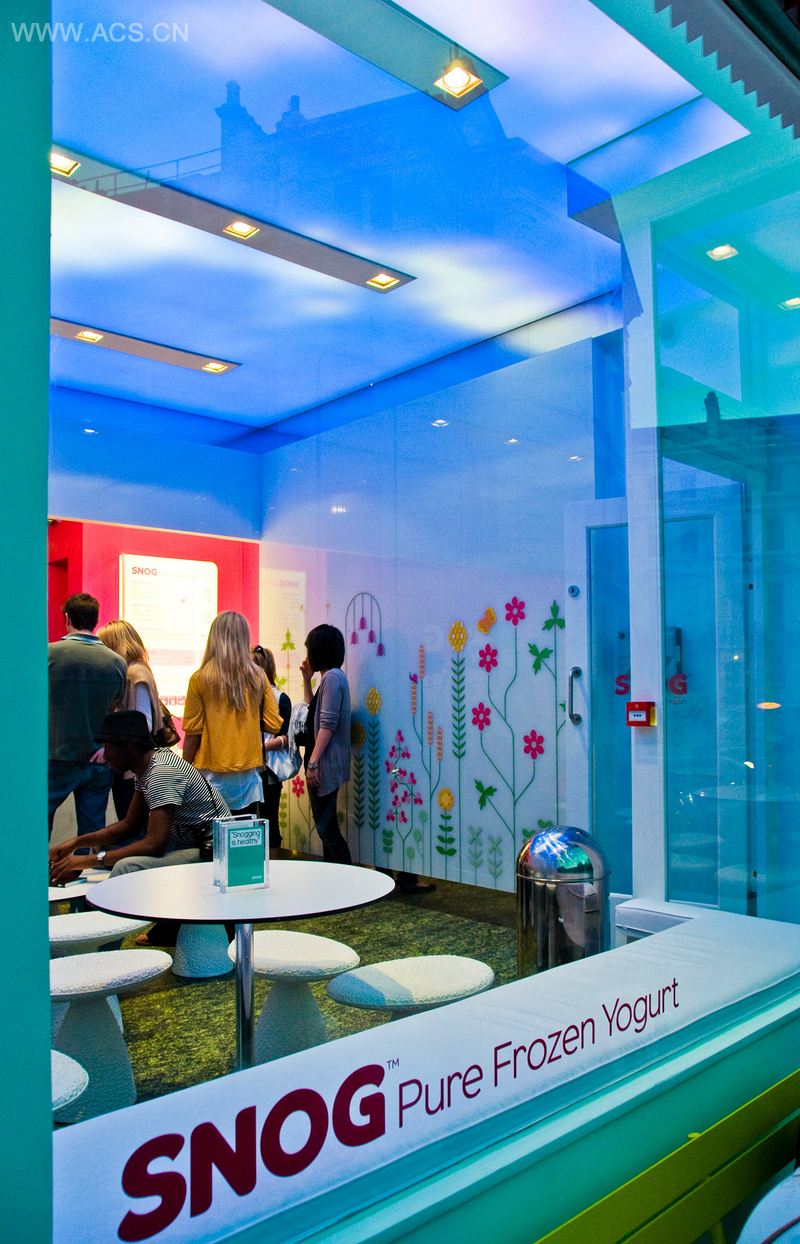 Snog是一家特许食品供应店,专售冰冻酸奶,其产品在英国同类酸奶制品中口碑甚佳。食品店的设计思路,是要为顾客营造高端、现代的室内氛围,在原有设计的基础之上,实现突破性的创新。