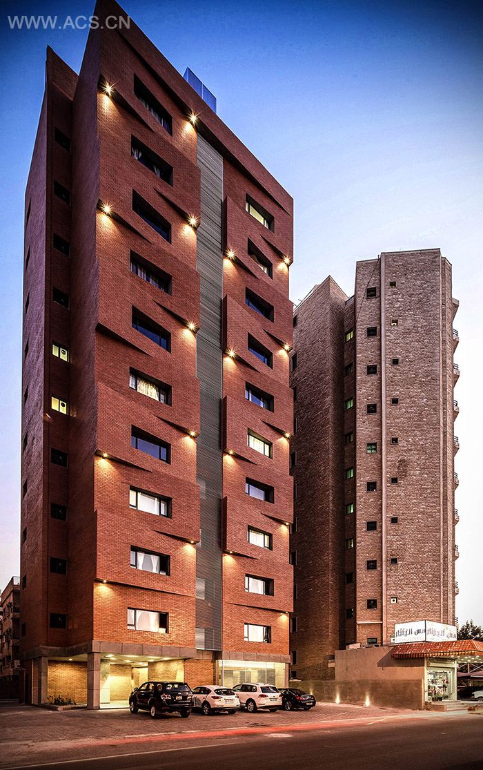 身披砖制外衣,造型动感的“Edges 公寓”在科威特沙米亚一条主要居住着外籍人士的街区小巷熠熠生辉。