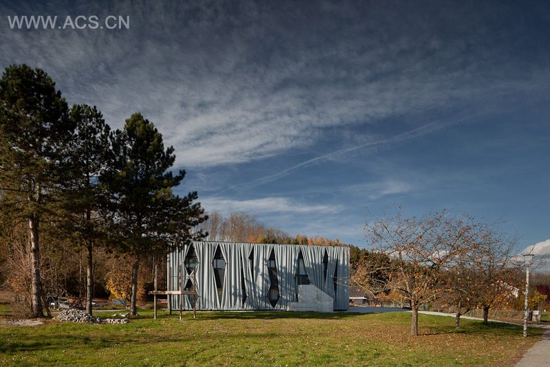 本项目在改建以前是一间包含两个酒吧的餐厅,并有一个通过走廊联系的小分体。翻新工程需要实现两个住宅单位,建筑师通过在外墙外安装混凝土楼梯实现地面层和一层的入口分流。此外还有楼梯通往地下室。整个方案的亮点是外观,建筑师将原来的屋顶拆除后,再用浅灰色的褶皱窗帘围住整个建筑,这些窗帘可以根据需求保护用户隐私或者移开采光。室内常见的装饰元素被用于室外,起到了不一般的视觉刺激效果,成全了建筑迷人独特的外观。