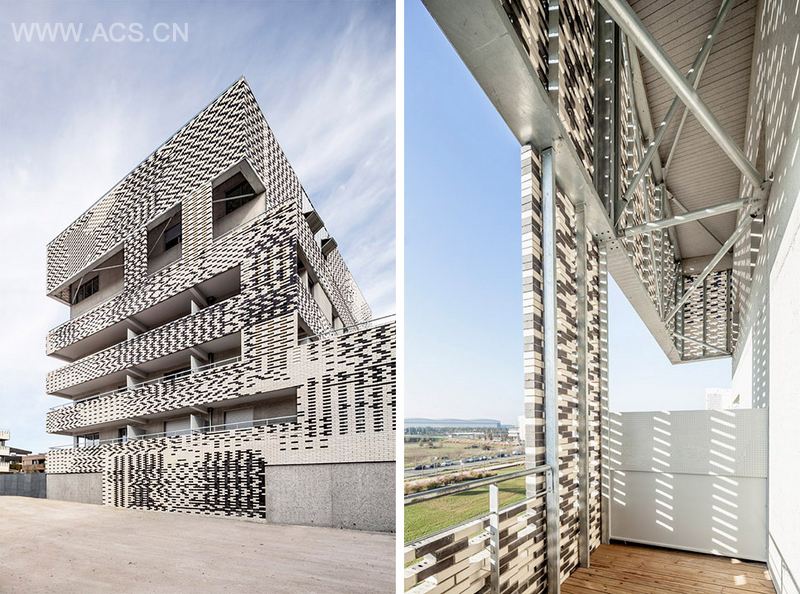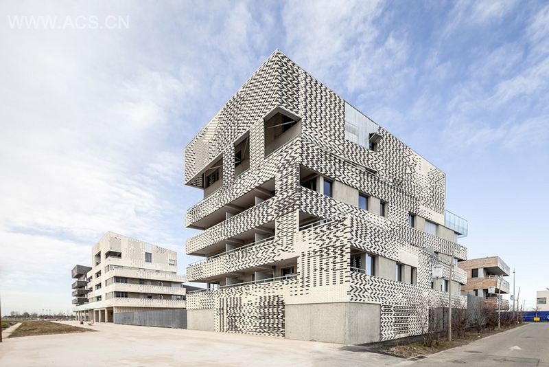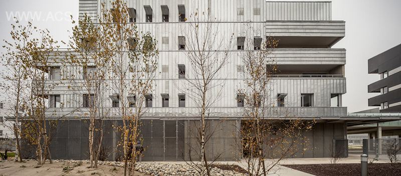项目位于图卢兹机场附近机场,毗邻加伦河。该住宅开发项目寻求每一居住单元生活环境的最大优化。整个住宅区的设计首先满足实际的生活需求而并非一味坚持抽象的设计理念。A、B、C、D四个相互独立但在概念上又紧密相连的建筑群傲然矗立在半开放的花园周围。区域A呈斜长形,一条街道可直通于此。区域B居于中间,独立布置,向内反射缕缕阳光。区域C位于角落;区域D楼层最低(三层),外观采用浅色调,如一道围墙静静守护着整个建筑群。