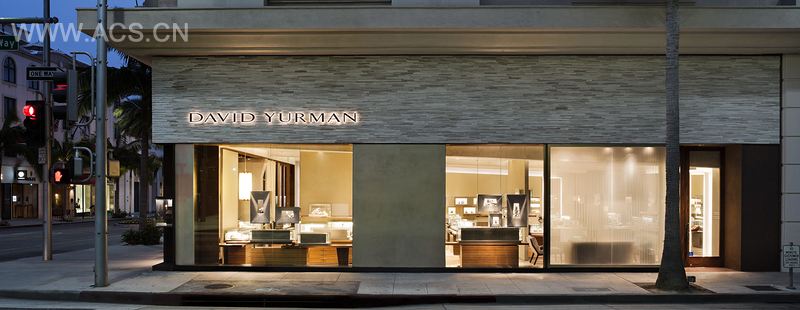 大卫·雅曼比弗利山庄旗舰精品店位于罗迪欧大道与布莱顿路交界处的一个显眼的街角上。店面宽敞,融入了太平洋海岸边休闲舒适的生活中。其在纽约的旗舰店仿佛麦迪逊大街上的联排别墅,也是由Gabellini Sheppard建筑设计所设计的。相反,位于比弗利山庄的店面,占地250平方米,则更像一个工作室或者小型工厂。店内弥漫着一种轻松随意却又不失典雅的氛围。