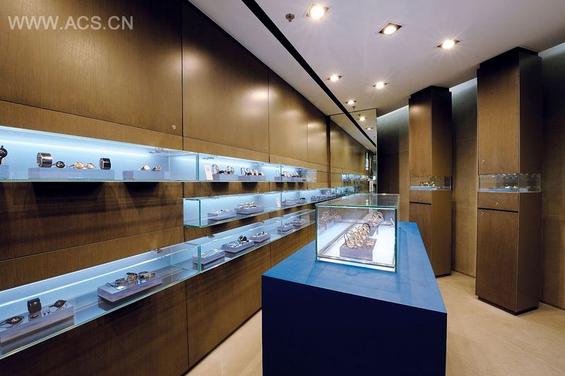 设计理念的主要特色是一系列线性的玻璃橱窗,漂浮在由楼面至天花板的灰色白蜡木细工家具中。这些玻璃橱窗提供动态的有组织的产品展示效果,细工家具则提供隐蔽的储藏空间。