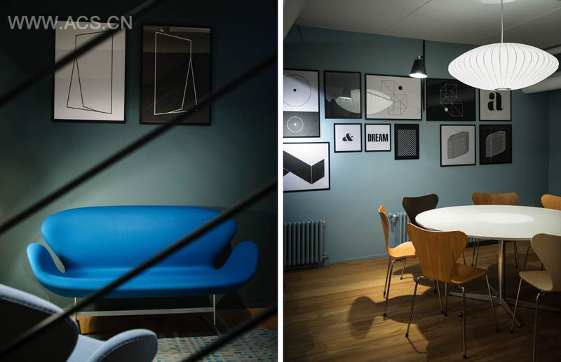 北欧风格混杂着米兰风,全新碰撞全新面貌。灯光,色彩,还有Fritz Hansen™的设计产品在空间中交相辉映。旗舰店中海御音响师设计了一个三维立体声环境,为客人提供5个限量版的黑色蛋椅互动,创建自定义电影配乐。