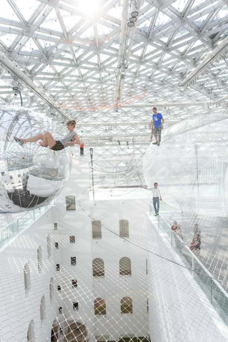 Artist and architect Tomás Saraceno created a massive ed installation that’s suspended more than 82 feet in the air of the Kunstsammlung Nordrhein-Westfalen museum in Düsseldorf, Germany.