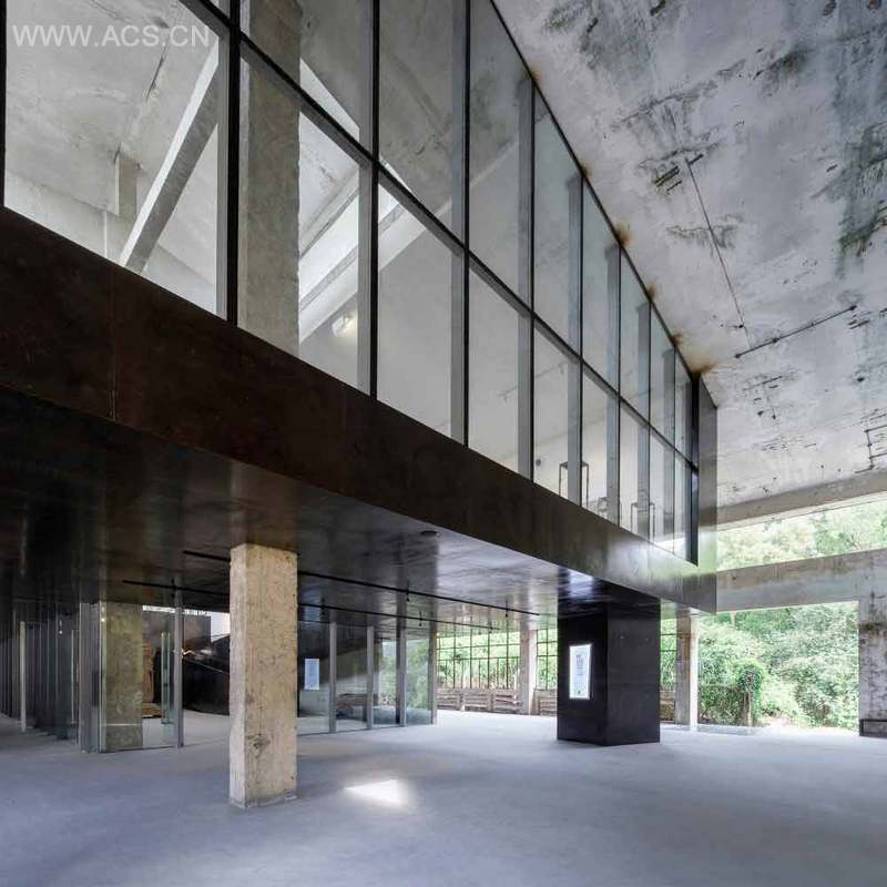 `满京华美术馆的前身是宏华印染厂的装备车间,美术馆设计的概念起源于对废弃建筑空间叙事的重构。新的建筑结构是完全独立存在并植入原有的旧车间内部基地,旧车间被看做一个大尺度的开放的混凝土罩处理,从而针对工业遗址建立起新的多层次的空间、时间逻辑。