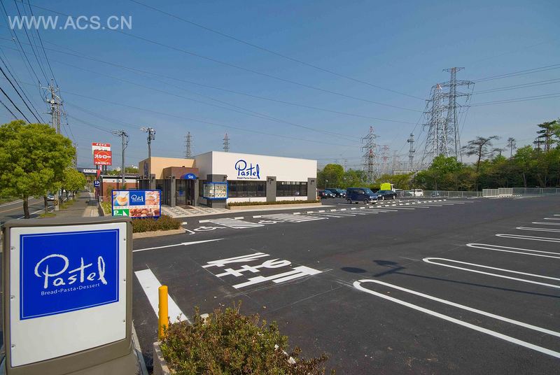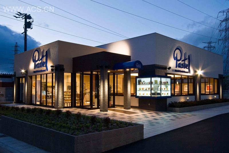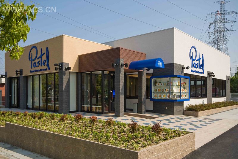 “Pastel Kuwana”是由一栋大楼建成的独立式餐厅,位于爱知县名古屋郊区的马路旁。餐厅以甜品为特色,因而建筑设计的理念为叠层松糕。
