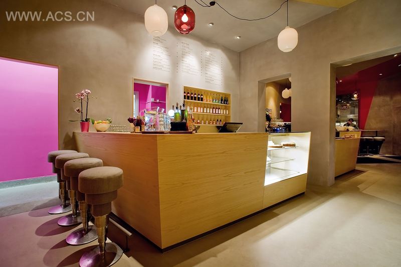 设计师依照店主的要求,在设计中奉行极致主义。一走进入口处,便给人以斗牛赛般的激进和兴奋感。设计师从斗牛赛中找寻灵感,公牛与斗牛士的角逐较量,一招一式都是力学美感。室内空间的材料与色彩的碰撞,成为泡沫咖啡厅的设计主题。西班牙式的激情与斯堪的纳维亚式的冷静相互交织,营造出生动、开放的空间,每个人都能在其中找到自己中意的元素。