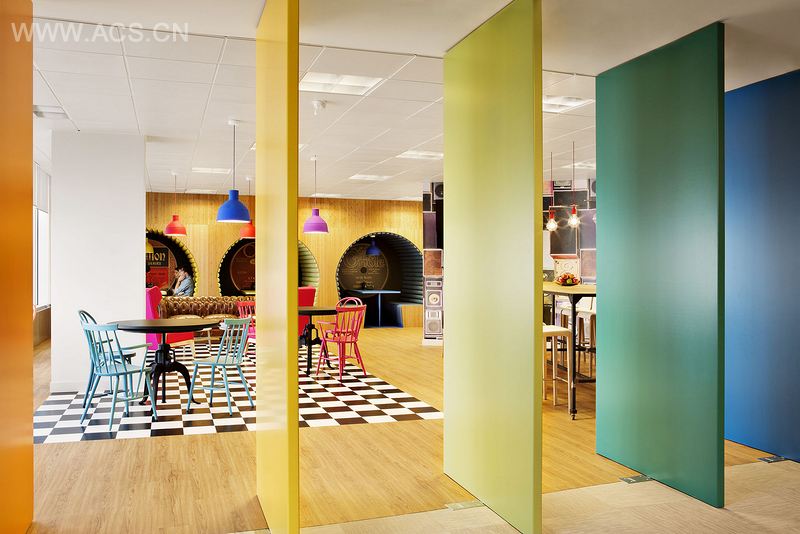 将丰富明亮的色彩用于家具,隔板,及灯光上,设计师很好地把握sony品牌精神,以音乐为中心,有效利用“设计语言”勾勒出一个生机勃勃、流畅性强的办公空间,更突出其开放与合作性。