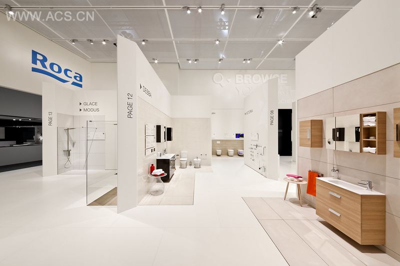 白色区域,极简抽象设计的产品区,“浏览你的浴室空间”的主题给各种浴室装修方案提出新概念。从浴缸到配件,ROCA的产品给参观者带来灵感,让其印象深刻。