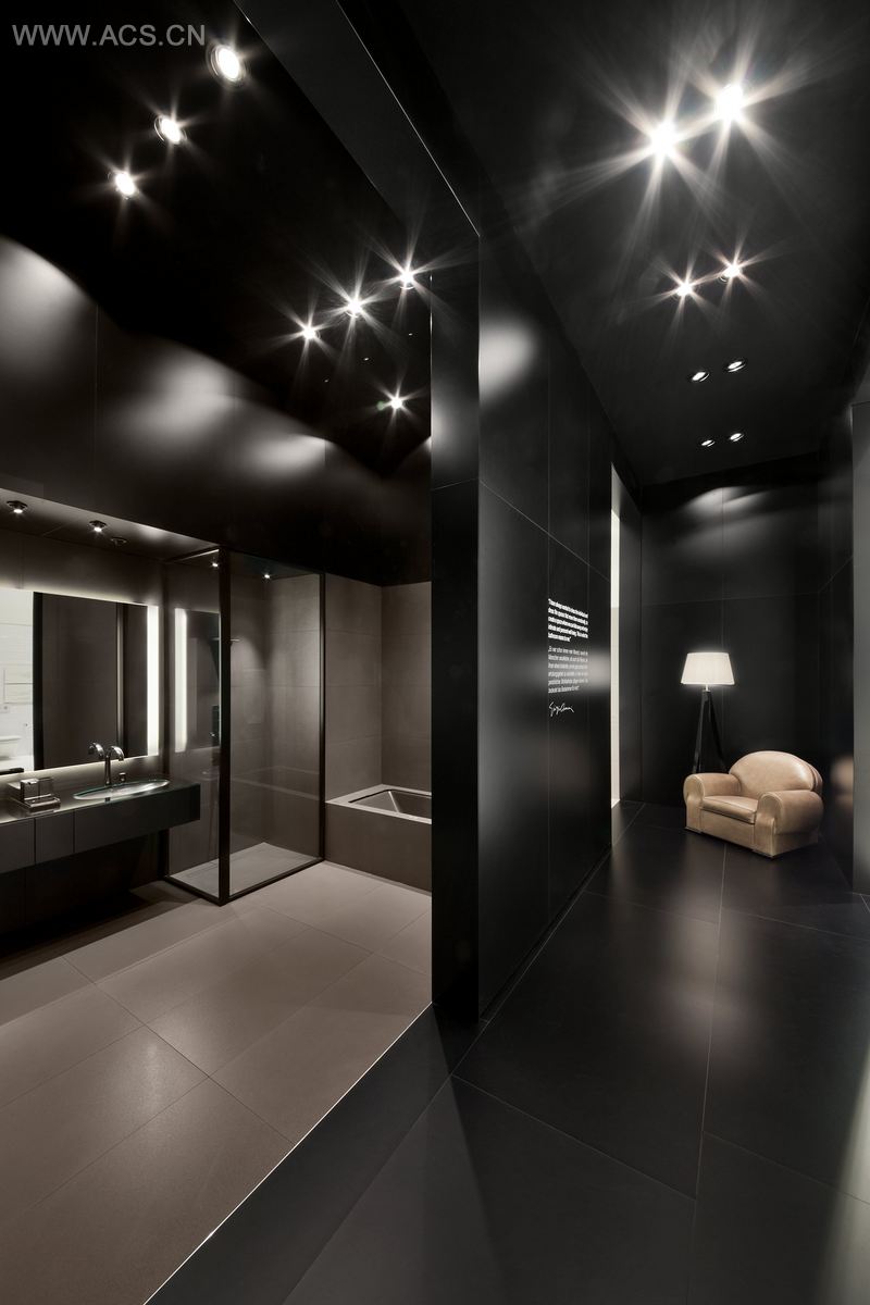 展示与高端品牌Armani的合作的区域使用了奢华质感的黑色。自2010年以来,这一系列因其独特的设计和超优的品质而著名。在此,两个领导品牌合力,展示了其品牌的专业水准。