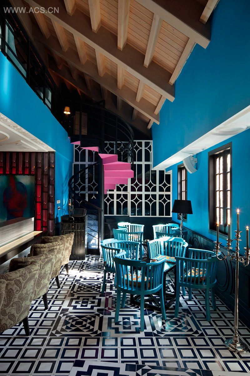对于其在上海的这第三家分店,该老板希望将餐厅打造成思南路上的一座“微型休闲会所”,因此请来法国设计团队Lime 388,借助他们在奢华居住空间设计领域的丰富经验,构筑出一个格调高雅,风格现代,集用餐、娱乐、休闲于一身的空间。