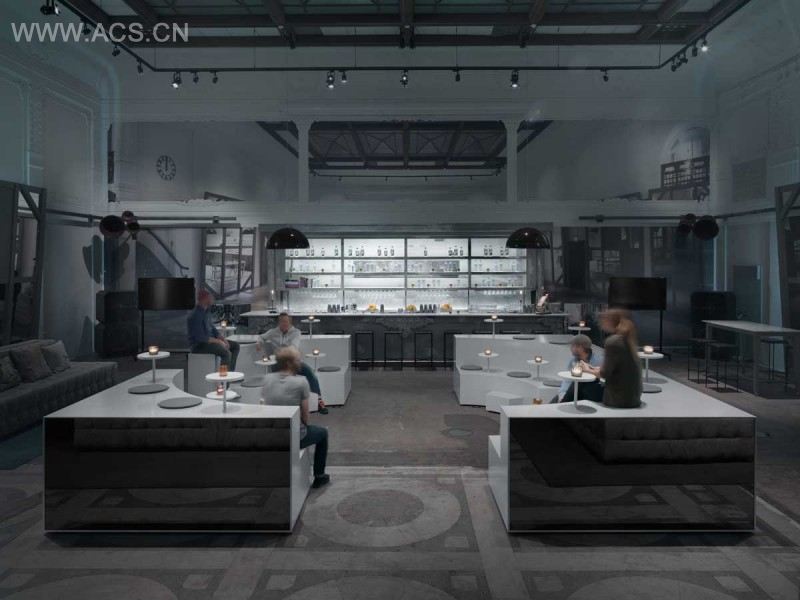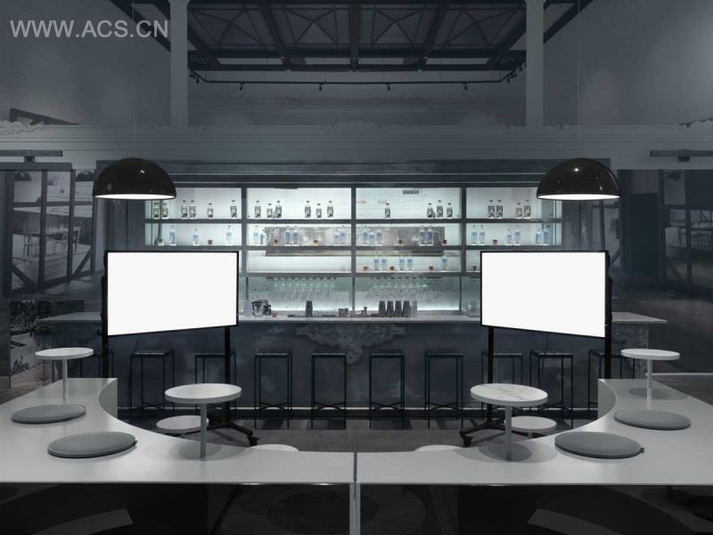 设计师做出了瑞典伏特加工作室内部的模块化解决方案,桌椅结合的办公用具可合并分开用于多种功能,极大提高空间及用具的综合利用度。