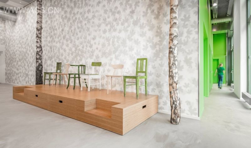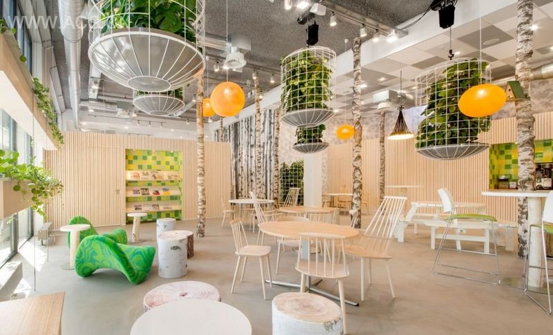 垂吊的盆栽让整个空间充满沁人的绿意,木头凳子,嵌入式的储物架,别致的配饰让空间更加出彩。