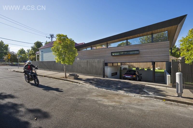 The ‘fun’ begins to emerge when rounding Hardiman Street. “I don’t like it” – says one of the locals half way through construction. “It’s not in keeping with the area…” The new extension is not meant to be sympathetic to an older style but rather been shaped by the clients’ brief, solar access and one of Melbourne’s best views back onto the city.
