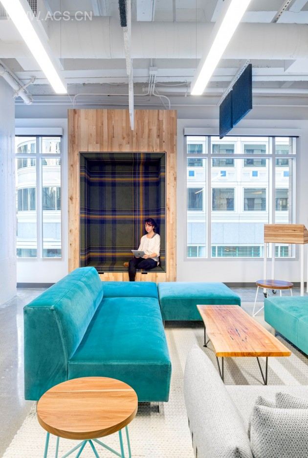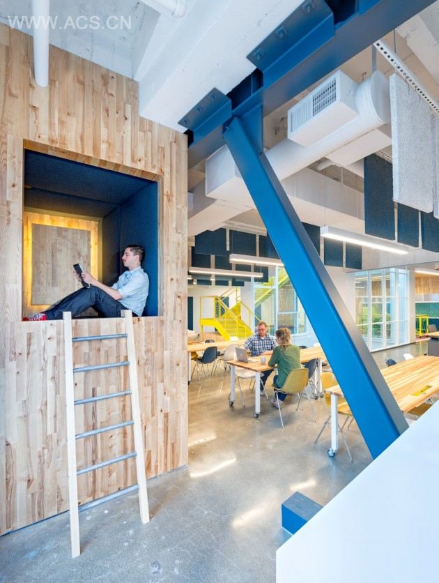 根据业主要求,想摆脱银行给人的单挑色彩形象,Studio O+A 设计了一个多彩十分具有活力的办公空间,激发员工活力与创新。