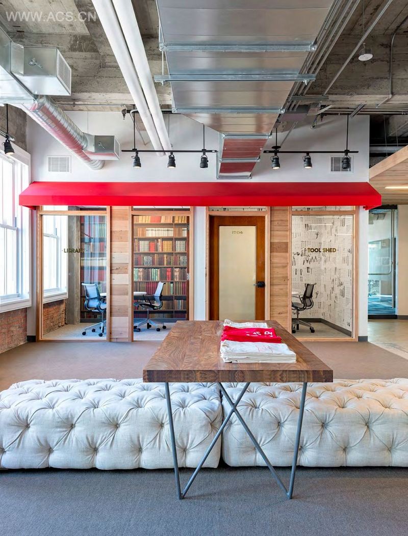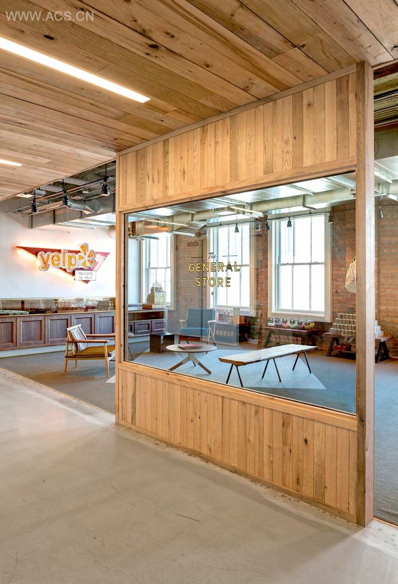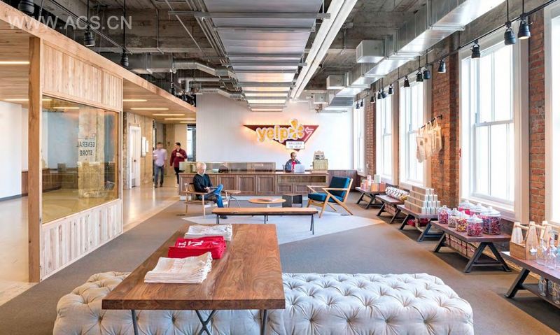 Yelp总部的设计是垂直的园区概念,多层楼包罗万象的场景。从一个小地点搬到经典的金融区高楼,设计的挑战就是要让工作流顺畅,沟通便捷,尽管楼层很多,也能够让员工之间有互动。