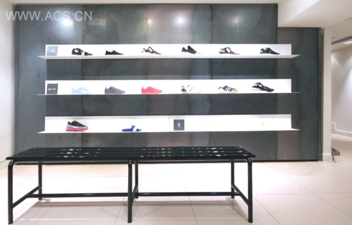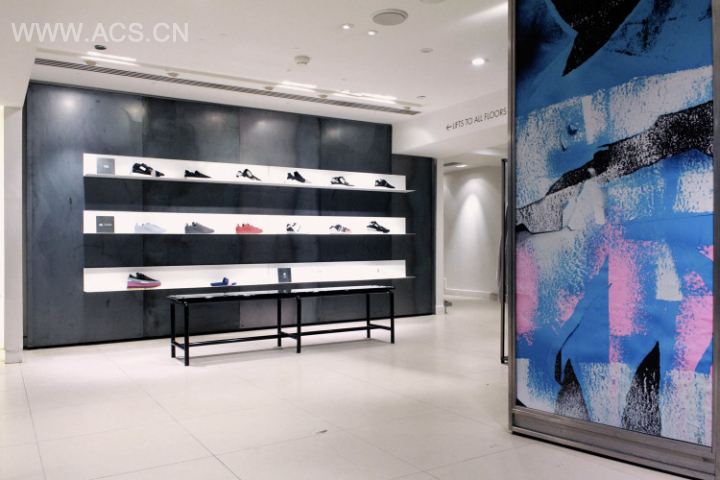 经典的黑白元素,展示架墙面部分的魔幻水彩元素增加时尚现代感。