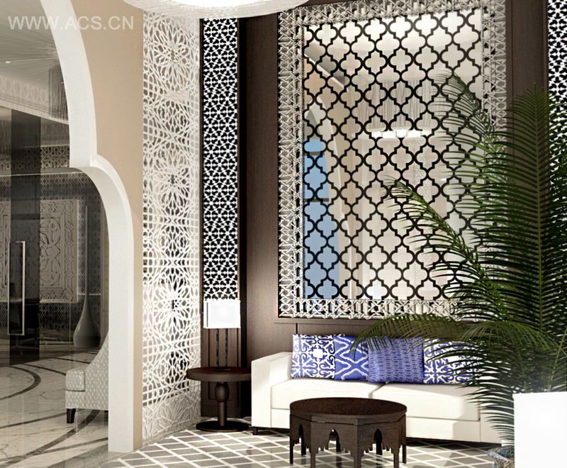 I managed and directed a team of designers while working in a private international company, this project was a hotel apartment with 27 floors in Bahrain, the client wanted a modern Moroccan style, simple, with light colors and some touches of navy blue.