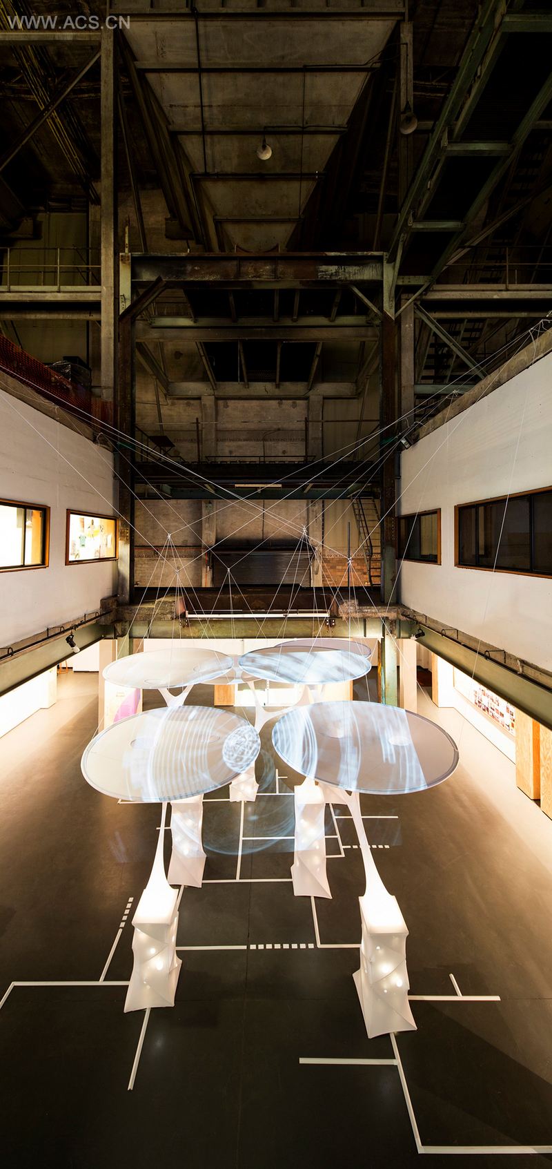 云之城:是对城市生态系统的一种雕塑化演绎,是Bosse对于未来城市的展望。美术馆地板上翱翔般伸展的云状薄膜固定在由全新外观的高楼大厦组成的“城市”上空。