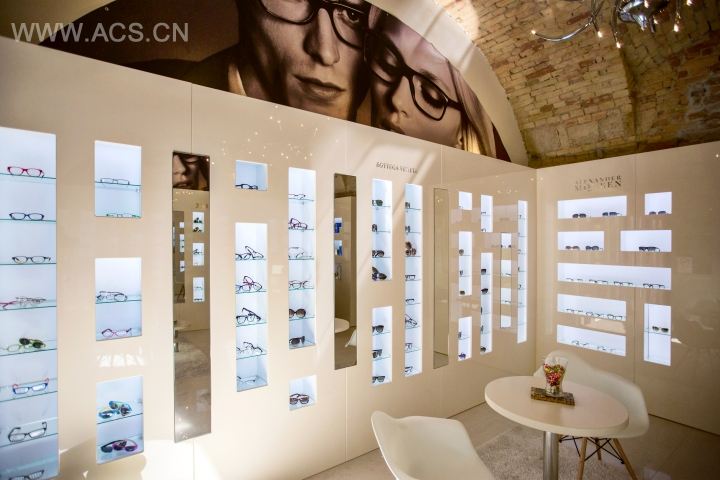 Optika Di Moda位于布达佩斯中心一个繁忙且非常时尚的街道,由Tamás Csiszér事务所设计。Optika Di Moda店内原始砖墙和高层段拱门是其特征元素。拱形大海报十分醒目,整个店面优雅不失个性。