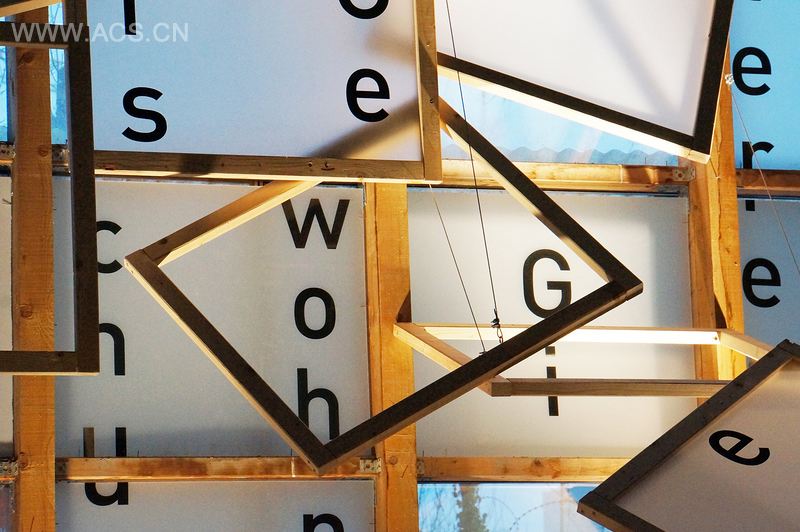 At the same time out of the ruins of the collapsed system a new one starts to grow. The squares rise up to build up new connections and structures. The visitors meander inbetween the ruins and the emerging new construction to discover illuminated quotes from famous authors, politicians and philosophers that address the topic of rebirth.