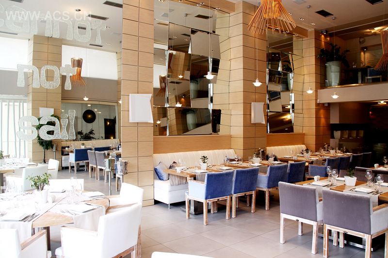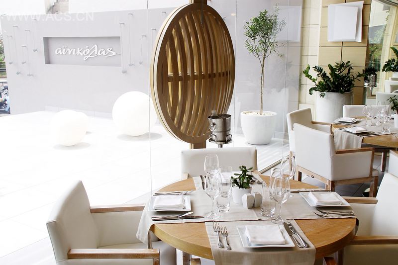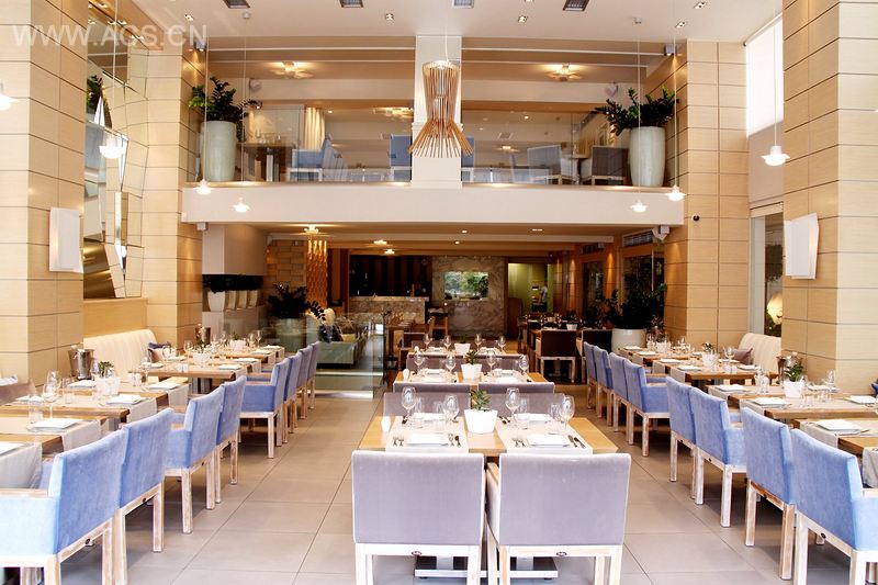 “Ai Nikolas”是一家轮廓鲜明的小型鱼鲜餐厅,其设计及建造过程耗时两个月,只在希腊开放。在这个舒适而奢华的空间里,希腊概念设计师兼建筑师Ismini Karali将木质表面、海洋主题的丝绸印花、白色皮沙发、浅蓝色天鹅绒纺织品和独一无二的立体灯结合成为整体。座位区面积为300平米,餐厅两层可轻松容纳120位顾客。餐厅的美学价值突出了海鲜佳肴高品质和简单的特性。设计师在设计这个现代而高雅的空间时没有采用夸张或刺激性的材料。丰富而温馨的装饰为顾客享用海鲜营造愉悦的气氛。