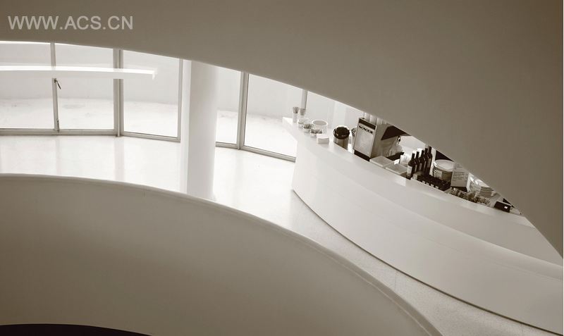 在此咖啡馆,可享用浓缩咖啡、美酒和甜点,并可欣赏Wright设计。设计师为空间注入新意,通过塑造、改变建筑的标志性外观,赋予其Wright设计语言和理念。单片的可丽耐面材贯穿于整个空间,为顾客营造有活力的动感氛围。曲线设计借鉴了图书馆建筑艺术。Kandinsky的明朗线条与Stella的冷静手法在此交汇。咖啡馆简约却不简单,传递的不是极简主义,而是平和与纯净。它就像一座图书馆,虽有很多读者走来走去,却不妨碍它的静若无声。